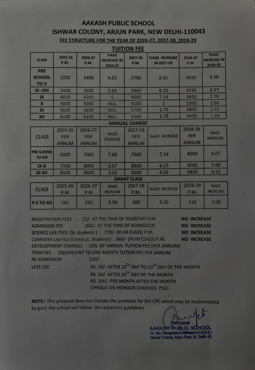 Aakash Public School, is an English Medium Co-Educational Public School recognised by. Directorate of education GNCT of Delhi up to senior secondary level & Affiliated to C.B.S.E. with all the three streams, situated at Arjun Park opp Akash Hospital New Delhi-43. It was established in the year 2005. It is unique in its own way. First, it has an ideal and pollution free environment with a magnificent airy and spacious four storey building fitted with ultra modern Intercom System and close circuit T.V. cameras. It is 10+2 school with Science, Commerce and Humanities streams. It enjoys a prominent position in the field of education the through its excellent 100% results of 10th and 12th for many years in the area. The school has stood for this marvellous achievement consistently for many years. The school has won many Medals in National School Games, C.B.S.E. National Championship and State level Championships.
